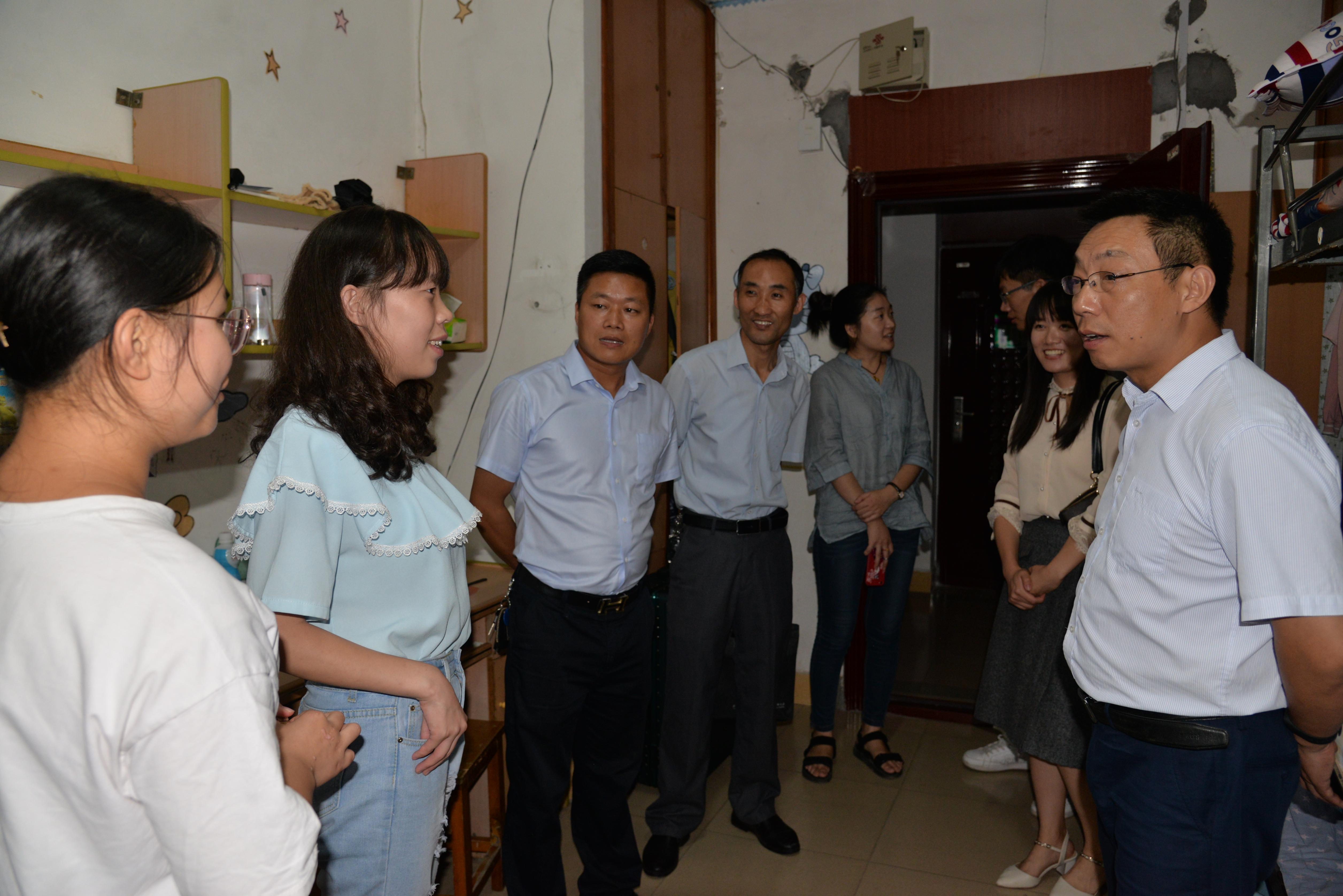 新闻网讯(通讯员 万钰 张毅 韩晓文)9月5日晚,2019级新生见面会结束之后,学院领导班子成员、各年级辅导员、新生班主任一同来到风华园员工公寓,走访并看望19级新同学们,送上温暖的关怀和问候。