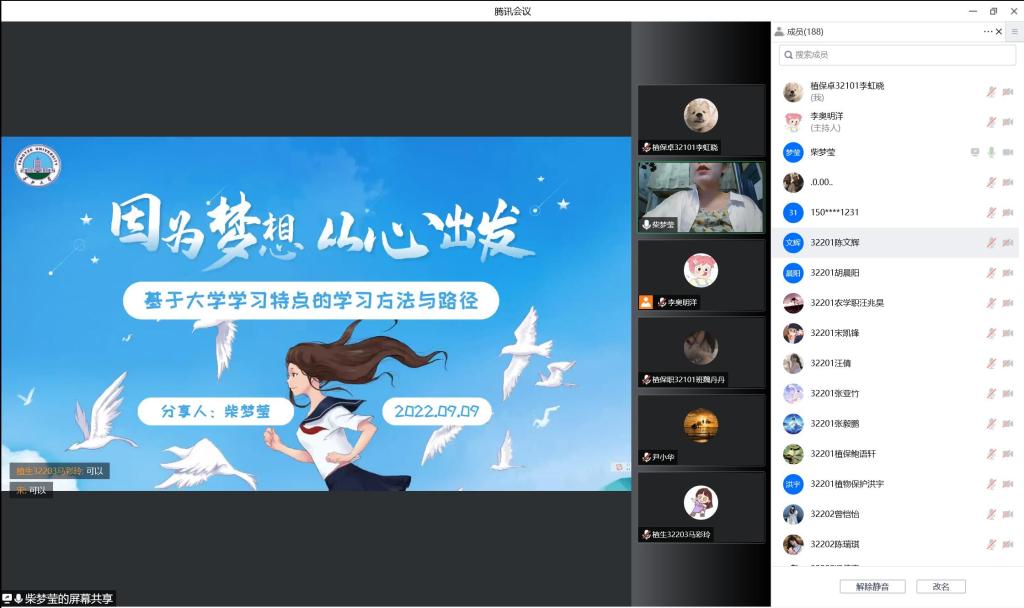 (通讯员 李雨珈 李虹晓)为对2022级本科生集中进行入学教育安排,9月9日早上8:30,公司在腾讯会议线上召开了“员工生涯规划讲座”和“高年级员工学习方法分享”活动,活动邀请了从公司毕业的优秀员工朱祥和高年级员工柴梦莹。此次会议由党委副书记尹小华主持,全体2022级本科生参加。