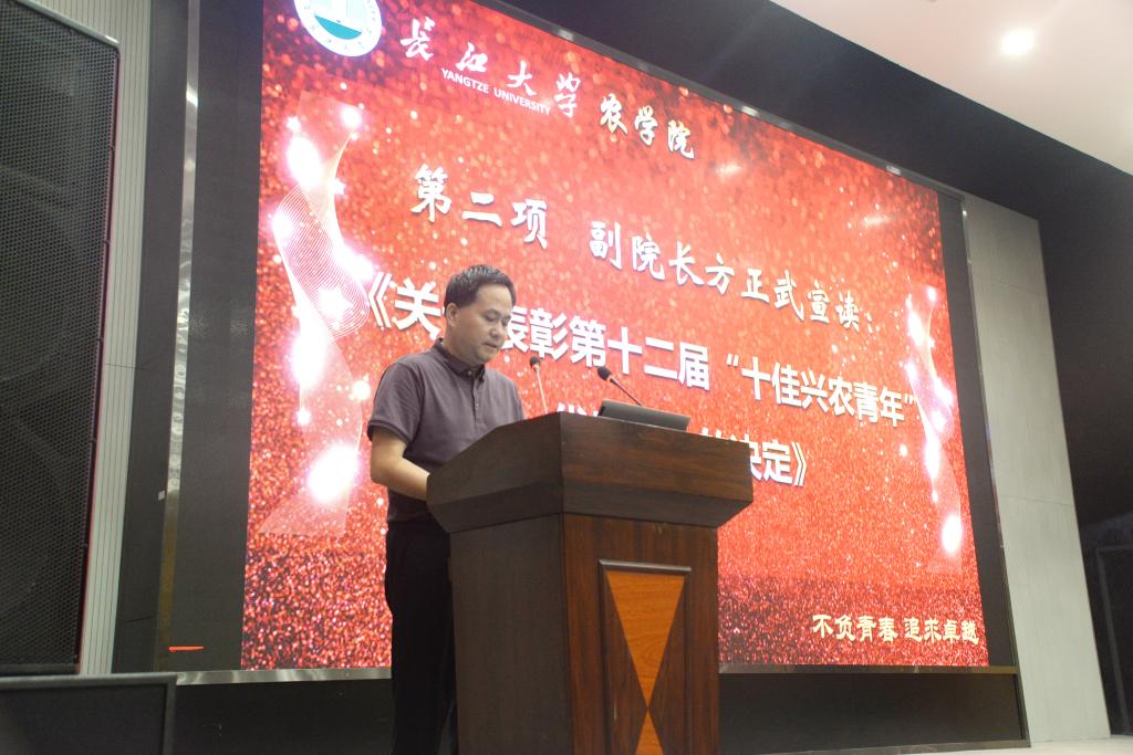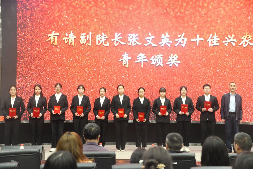betway西汉姆联副经理方正武宣读第十二届“十佳兴农青年”表彰文件,并向获奖同学表示祝贺,鼓励他们再接再厉,也鼓励广大同学全面发展,努力成为创新型农业高质量人才。副经理张文英为这十佳兴农青年颁奖并合影留念。