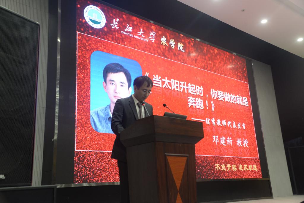 优秀教师代表邓建新教授发言,他向新同学介绍了学院取得的成就,讲述了老师和员工相互成就的关系,从四个方面对同学们即将面对的未知生活作以建议。他寄语全体新同学们站在一个全新的起点上,充分展现自己的主观能动性,做好自我规划,在betway西汉姆联遇到最好的自己。