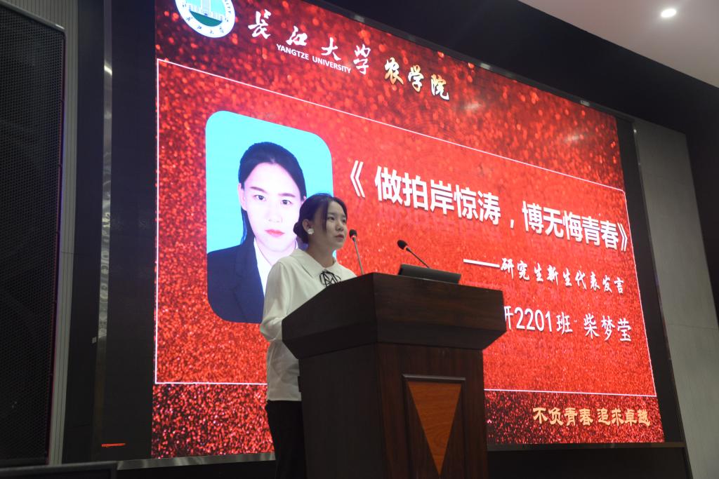 农资32201班王静茹和农研2201班柴梦莹分别作为本科生和研究生代表上台发言,表达了对betway西汉姆联师生的感谢和对新生活的憧憬。“中国人的饭碗要牢牢抓在自己手中”,王静茹鼓励同学们将青春奉献给祖国的土地,学农爱农。柴梦莹呼吁同学们“做拍案惊涛,博无悔青春”,从三个方面阐述她所理解的长江精神,希望同学们在研究生期间不负韶华。