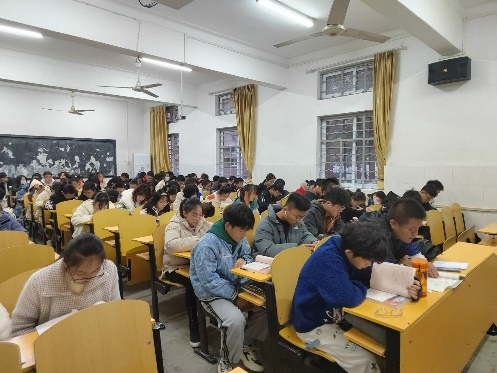 如今,学期已经过去一大半,大一新生即将面对自己进入大学的第一次期末考试,还有英语四级考试,大家在早晚自习上没有丝毫松懈,而是抓紧一分一秒,在做着自己的事情,积极复习备考,同学们都专心致志,有的在读背英语单词,有的在做着数学化学作业,都全身心的投入到学习中去。
