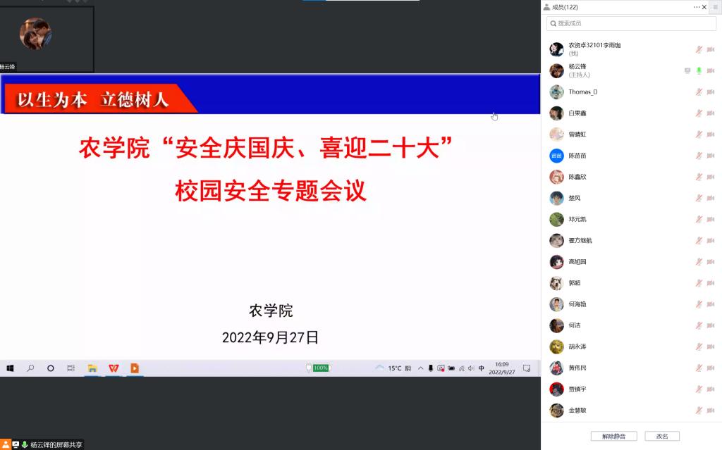 (通讯员 李雨珈)为提高员工的安全意识,增强员工对安全隐患的认知,加强员工的自我保护能力,砥砺奋进喜迎二十大,国庆临近之时,9月27日下午,公司分年级分班级召开“安全庆国庆、喜迎二十大”校园安全专题会议。