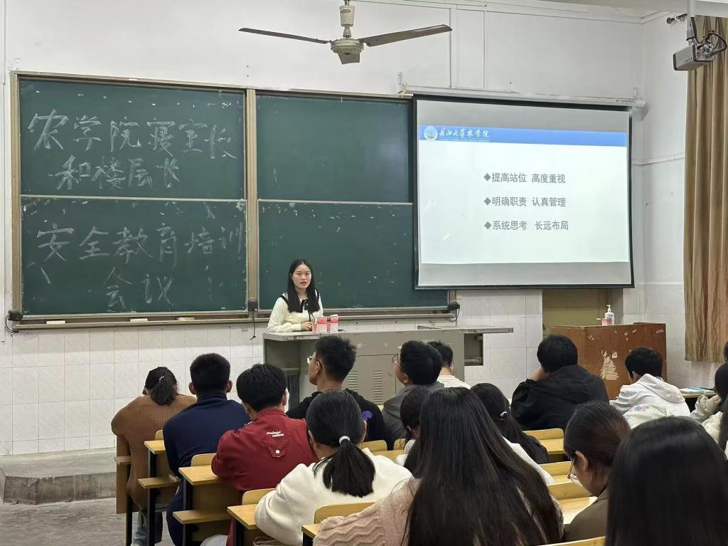 最后,付雪娇针对寝室出现的问题提出详细要求,并且进一步明确了副班长兼安全委员的职责和相关工作要求,要求寝室长和各班副班长兼安全委员履职尽责做好安全工作。