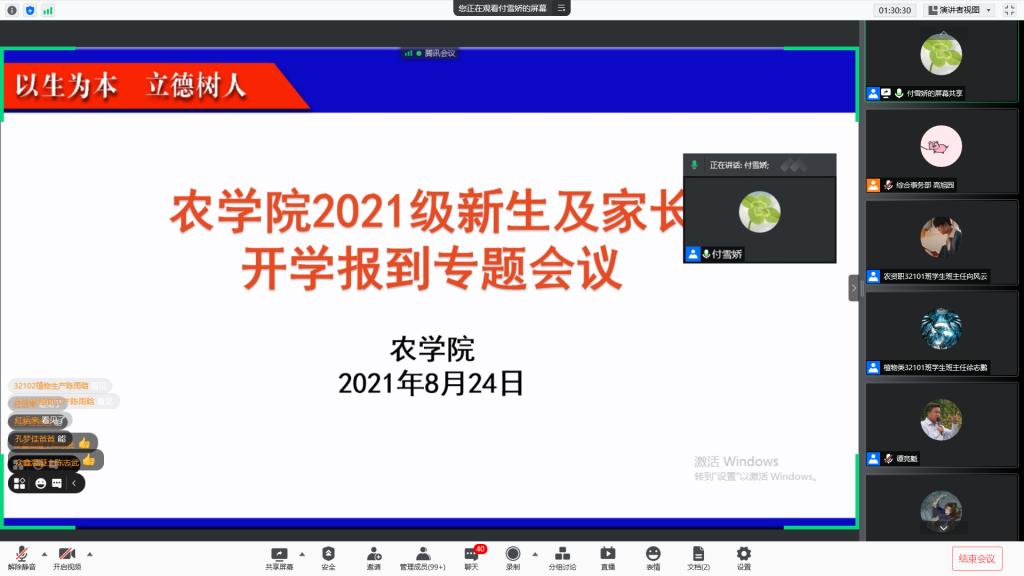 (通讯员 付雪娇)为传达学校关于新生开学返校相关工作精神,及时回应新生及家长迫切关心的问题,8月24日晚8点,betway西汉姆联利用腾讯会议召开“2021级新生及家长开学报到专题会议”,参加本次会议的有公司党委副书记谭亮魁、副经理张文英、班主任、辅导员、全体新生及父母。