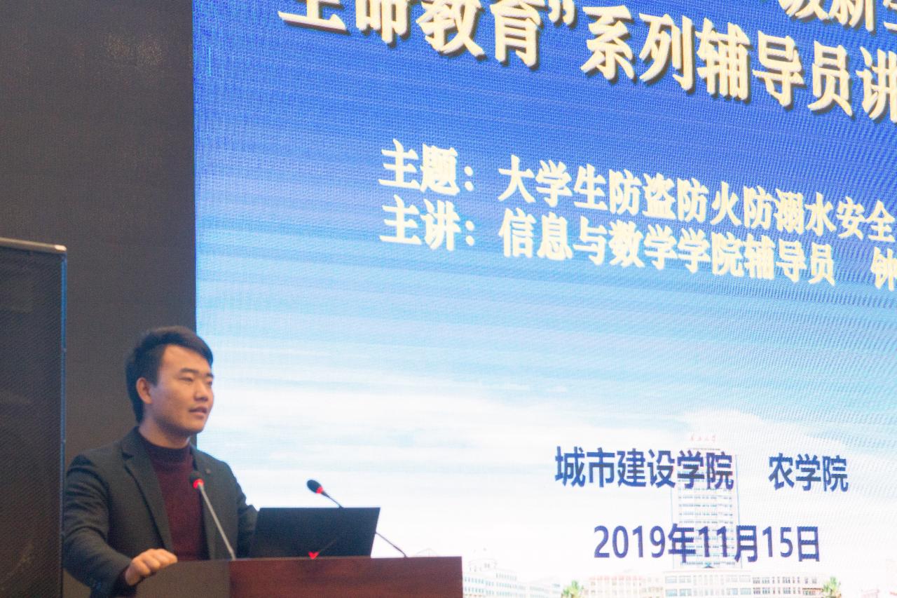 通讯社讯(见习记者 汤莉/文 聂子龙/摄)珍爱生命,注意安全;教育第一,预防为主。继11月6日betway西汉姆联2019级新生首次“生命教育”辅导员讲座开讲后,11月15日晚7点整,第二场“生命教育”辅导员讲座在农科大楼1058报告厅如期举行。本次讲座邀请信息与数学学院辅导员钟赛和城市建设学院辅导员何儒权分别讲解了“老员工防盗防火防溺水”和“网络与国家公共安全”,betway西汉姆联辅导员付雪娇及19级全体新生参加了本次大会。