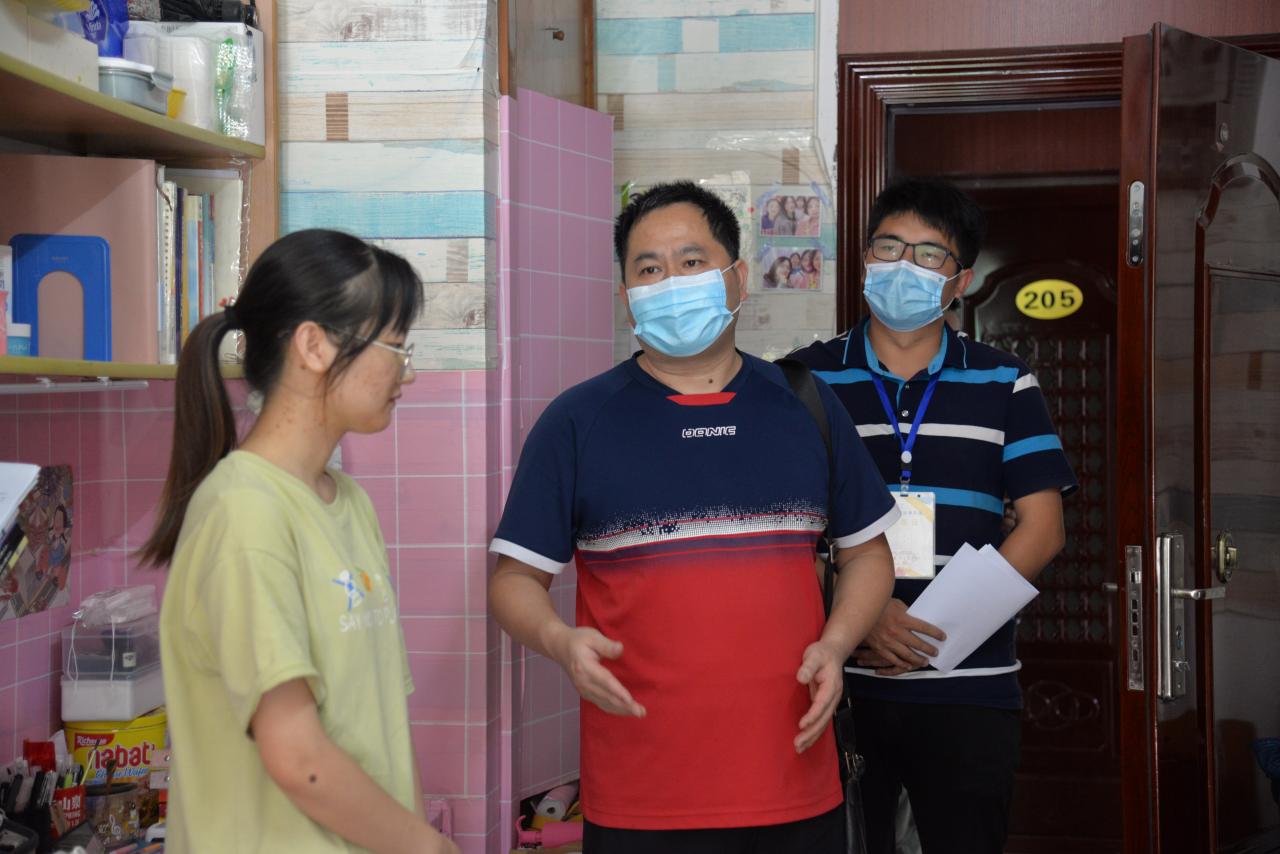 通讯社讯(员工记者 覃杨)为进一步强化疫情防控期间返校员工的健康安全防范意识,营造良好的寝室卫生环境,了解返校后员工的生活学习状况,9月3日下午2点,betway西汉姆联副经理方正武、党委副书记谭亮魁、学工办主任刘庆、分团委书记侯聪、辅导员付雪娇辅导员林香亮带队走访了本科生寝室。